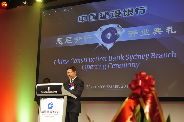 20101130,中国建设银行悉尼分行在澳大利亚悉尼举行隆重开业仪式。中国建设银行监事长张福荣先生、业务总监杜亚军先生、中国驻澳大利亚大使陈育明先生、中国驻悉尼总领事胡山先生、澳大利亚审慎监管局董事伊恩·洛夫林先生以及来自澳大利亚社会各界嘉宾400余人应邀出席了开业仪式。悉尼分行是自2008年全球金融海啸以来第一家在澳获得经营资格的中资银行,也是建行在大洋洲设立的第一家分行。悉尼分行的设立不仅标志着建行的海外机构网络已覆盖了全球各主要金融中心,也标志着建行的海外发展战略又向前推进了重要一步。