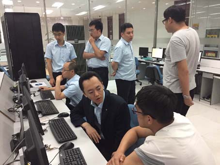 赵麟为在营业部参加测试演练的妻子维修设备。